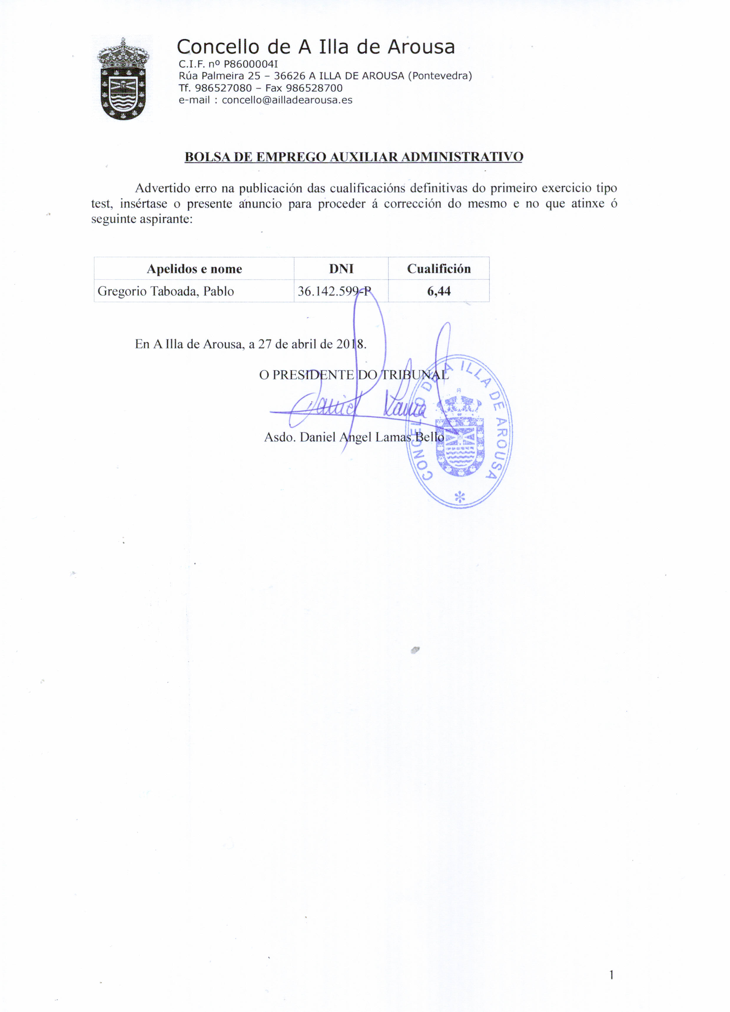 Correción nota proba auxiliar administrativo
