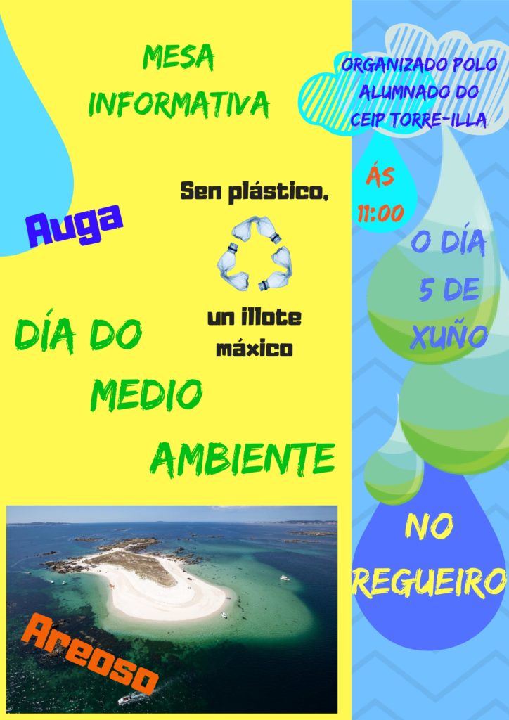1) A partires das 11 da mañán os alumnos do Colexio Torre Illa instalarán tres mesas informativas coas temáticas da auga, dos plásticos e do illote O Areoso.